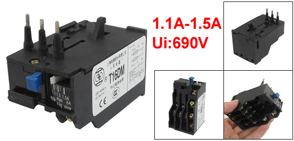 T16DM 3 Pole 1.1A-1.5A Current Range Motor Thermal Overload Relay 1NO 1NC