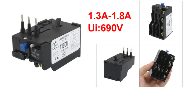 T16DM 3 Pole 1.3A-1.8A Current Range Motor Thermal Overload Relay 1NO 1NC