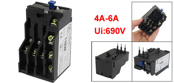 Product Name Thermal Overload Relay Model T16DM Thermal Contact 1 NO(97-98), 1 NC(95-96) Pole Number 3 Pole Thermal Relay Rated Current 6A Adjustable Current Range 4A-6A Operation Current 6A Ue(AC-15) 220/380/500V Ui (AC-15) 690V Ith 10A Material Plastic, Electronic Components Total Size (Approx) 5.8 x 4.3 x 7.9cm / 2.3" x 1.7" x 3.1" (L*W*H) Color Black Net Weight 106g Package Content 1 x Thermal Overload Relay - Reviews