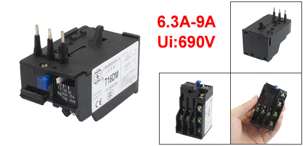 T16DM 3 Pole 6.3A-9A Current Range Motor Thermal Overload Relay 1NO 1NC