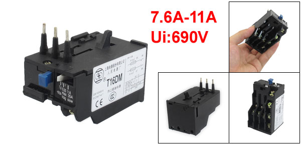 T16DM 3 Pole 7.6A-11A Current Range Motor Thermal Overload Relay 1NO 1NC