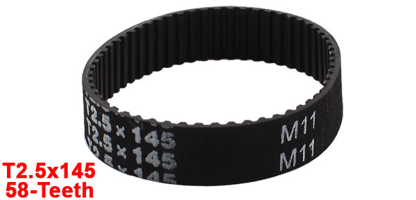 DetailsT2.5x145 145mm Girth 58-Teeth 2.5mm Pitch 10mm Wide Industrial Timing Belt  Product Name Timing Belt Model T2.5x145 Number of Teeth 58 Pitch 2.5mm / 0.1" Belt Width 10mm / 0.4" Pitch Line Length 145mm/5.7" Material Rubber Color Black Weight 4g Package Content 1 x Timing Belt