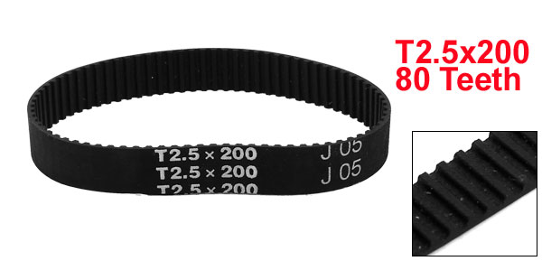 Product Name Timing Belt Model T2.5x200 Number of Teeth 80 Teeth Pitch 2.5mm / 0.1" Belt Width 10mm / 0.4" Belt Girth 200mm/ 7.9" Material Rubber Color Black Weight 4g Package Content 1 x Timing Belt - Reviews
