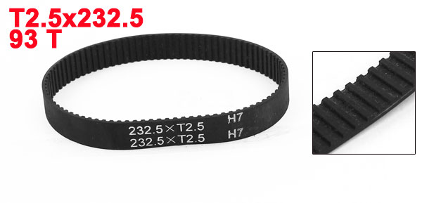 DetailsT2.5x232.5 93 Teeth 10mm Width Rubber Drying Machine Timing Belt Black  Product Name Timing Belt Model T2.5x232.5 Number of Teeth 93 Teeth Pitch 2.5mm / 0.1" Belt Width 10mm / 0.4" Belt Girth 232.5mm/ 9.2" Material Rubber Color Black Weight 3g Package Content 1 x Timing Belt