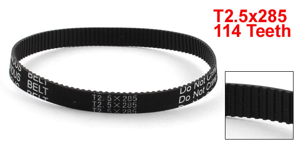 Product Name Timing Belt Model T2.5x285 Number of Teeth 114 Teeth Pitch 2.5mm / 0.1" Belt Width 10mm / 0.4" Belt Girth 285mm/11.2" Material Rubber Color Black Weight 7g Package Content 1 x Timing Belt - Reviews