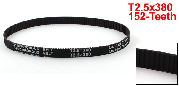 T2.5x380 152 Teeth 10mm Width Black Groove Synchronous Timing Belt 380mm Girth