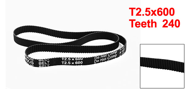 Product Name Timing Belt Model T2.5x600 Number of Teeth 240 Pitch 2.5mm / 0.1" Belt Width 10mm / 0.4" for 10mm Timing Pulley Pitch Line Length 600mm/23.6" Material Rubber Color Black Weight 11g Package Content 1 x Timing Belt - Reviews