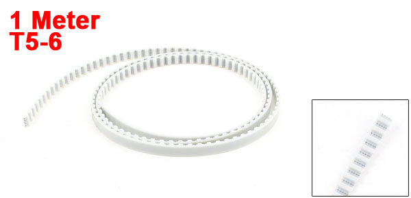 Product Name Timing Belt Model T5-6 Teeth Pitch 5mm / 0.2" Belt Width 6mm / 0.24" Belt Length 1Meter/ 39.4"(3.3Ft) Design Open Ended Material Polyurethane(PU) Color White Weight 19g Package Content 1 x Timing Belt - Reviews