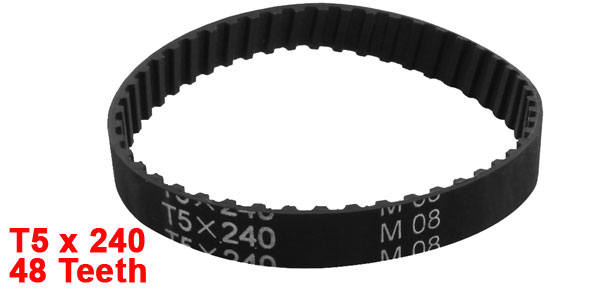 Product Name Timing Belt Model T5 x 240 Number of Teeth 48 Pitch 5mm / 0.2" Belt Width 10mm / 0.4" Pitch Line Length 240mm/9.4" Material Rubber Color Black Weight 8g Package Content 1 x Timing Belt - Reviews