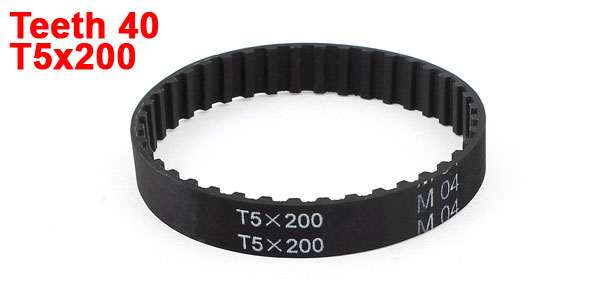 Product Name Timing Belt Model T5x200 Number of Teeth 40 Pitch 5mm / 0.2" Belt Width 10mm / 0.4" Pitch Line Length 200mm/ 7.9" Material Rubber Color Black Weight 6g Package Content 1 x Timing Belt - Reviews