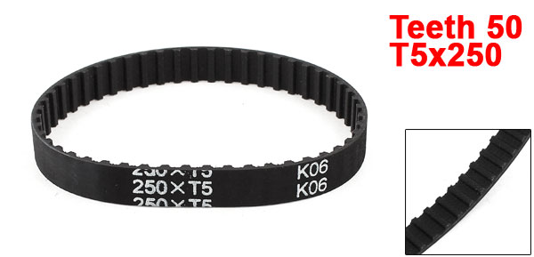 Product Name Timing Belt Model T5x250 Number of Teeth 50 Teeth Pitch 5mm / 0.2" Belt Width 10mm / 0.4" Belt Girth 250mm/ 9.8" Material Rubber Color Black Weight 8g Package Content 1 x Timing Belt - Reviews