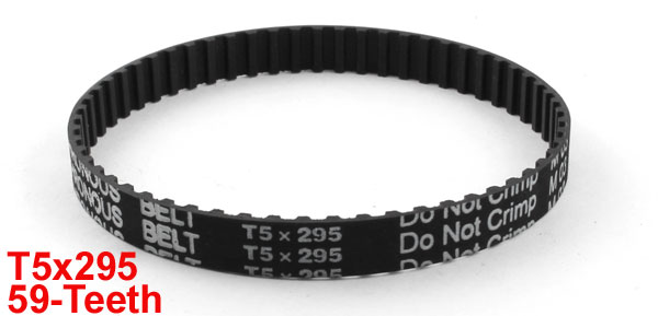 Product Name Timing Belt Type T5x295 Number of Teeth 59 Pitch 5mm/0.2“ Belt Width 10mm / 0.39" Belt Girth 295mm /11.6" Material Rubber Color Black Weight 10g Package Content 1 x Timing Belt - Reviews