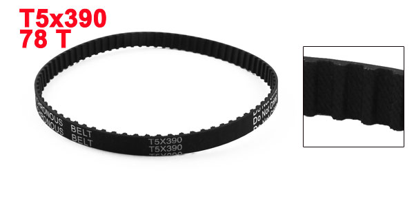 Product Name Timing Belt Model T5x390 Number of Teeth 78 Teeth Pitch 5mm / 0.2" Belt Width 10mm / 0.4" Belt Girth 390mm/15.4" Material Rubber Color Black Weight 11g Package Content 1 x Timing Belt - Reviews