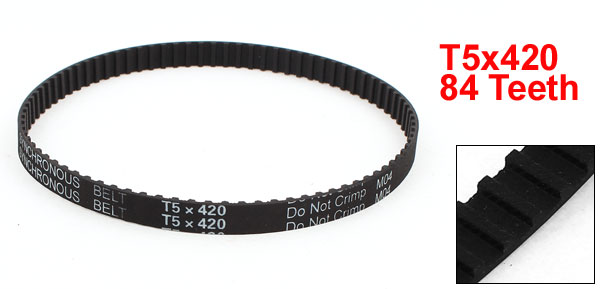 Product Name Timing Belt Model T5x420 Number of Teeth 84 Teeth Pitch 5mm / 0.2" Belt Width 10mm / 0.4" Belt Girth 420mm/ 16.5" Material Rubber Color Black Weight 10g Package Content 1 x Timing Belt - Reviews