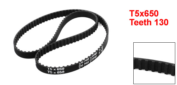 Product Name Timing Belt Model T5x650 Number of Teeth 130 Teeth Pitch 5mm / 0.2" Belt Width 10mm / 0.4" Belt Girth 650mm/25.6" Material Rubber Color Black Weight 20g Package Content 1 x Timing Belt - Reviews