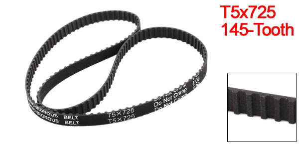 Product Name Timing Belt Model T5x725 Number of Teeth 145 Teeth Pitch 5mm / 0.2" Belt Width 10mm / 0.4" Belt Girth 725mm/28.5" Material Rubber Color Black Weight 20g Package Content 1 x Timing Belt - Reviews