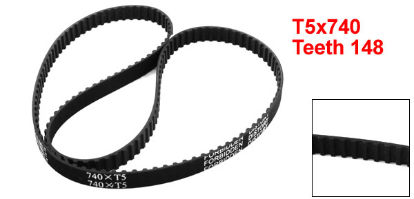 Product Name Timing Belt Model T5x740 Number of Teeth 148 Teeth Pitch 5mm / 0.2" Belt Width 10mm / 0.4" Belt Girth 740mm/29" Material Rubber Color Black Weight 21g Package Content 1 x Timing Belt - Reviews