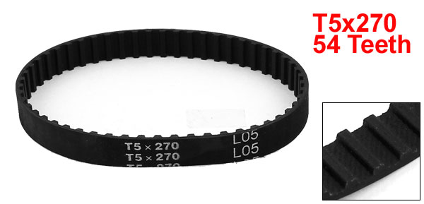 Product Name Timing Belt Model T5x270 Number of Teeth 54 Teeth Pitch 5mm / 0.2" Belt Width 10mm / 0.4" Belt Girth 270mm/ 11" Material Rubber Color Black Weight 9g Package Content 1 x Timing Belt - Reviews