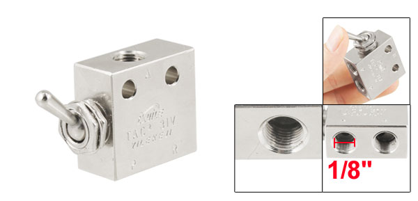 Product Name Toggle Valve Model TAC2-31V Type 2 Position 3 Way Joint Pipe Bore PT 1/8" PT Mount Thread Dia. 5mm Knob Length 18mm/0.7'' Body Size 33 x 31 x 15mm/1.3'' x 1.2'' x 0. 59"(L*W) Color Silver Tone Material Metal Net Weight 128g Package Content 1 x Toggle Valve - Reviews