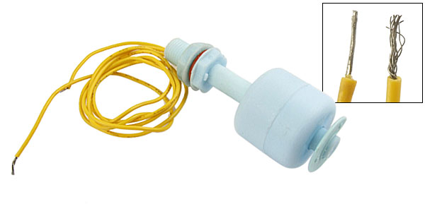 Product Name Water Level Sensor Contacts NO+NC Max Contact Rating 10W Max Switch Voltage 100V DC Max Switch Current 0.5A Max Breakdown Voltage 220V DC Max Carry Current 1.0A Max Contact Resistance 100mΩ Temperature Rating -10 ~ +85 Degree Float Ball Material Plastic Float Body Material Plastic Float Ball Size 25 x 25mm/ 1" x 1"(D*H) Screw Thread Diameter 9.5mm/0.27" Retaining Clip Diameter 20mm/ 0.79" Body Total Length 65mm/ 2.6" Cable Length 350mm/ 13.8" Color Blue, Yellow Weight 17g Package Content 1 x Water Level Sensor - Reviews