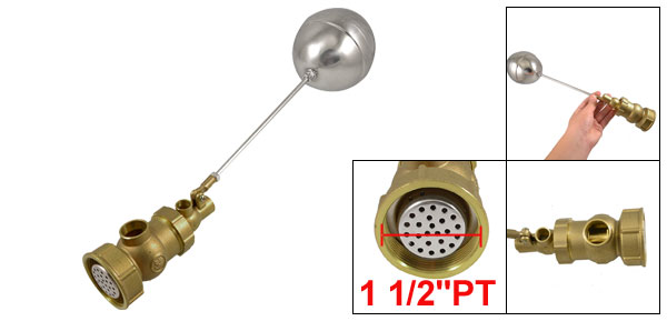 Product Name Float Ball Material Stainless Steel, Brass Color Silver Tone, Gold Tone Ball Diameter 92mm/ 3.6" Female Thread Diameter 47.8mm Female Thread Size 1 1/2"PT Hole Diameter Small: 16.8mm/0.66"