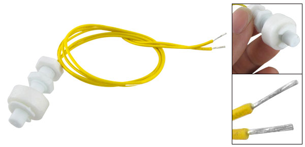Product Name Water Level Sensor Contacts NO+NC Model No. PL8035 Max Contact Rating 10W Max Switch Voltage 100V DC Max Switch Current 0.5A Max Breakdown Voltage 220V DC Max Carry Current 1.0A Max Contact Resistance 100mΩ Temperature Rating -10 ~ +85 Degree Float Ball Material P.P Float Body Material Plastic Float Ball Size 17.6 x 6.8mm(D*H) Screw Thread Diameter 7.7mm Washered Nut Diameter 13.3mm Retaining Clip Diameter 13.5mm Body Total Length 35mm Cable Length 38cm/15" Color White Weight 8g Package Content 1 x Float Switch Water Level Sensor - Reviews
