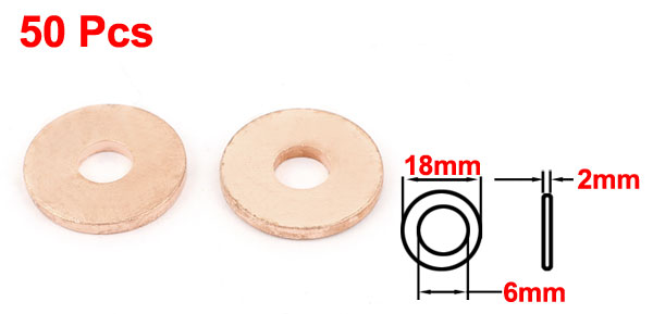 DetailsTattoo Machine Copper Crush Washer Flat Ring 6mmx18mmx2mm 50Pcs  Product Name Copper Washer Inner Diameter 6mm/0.24" Outer Diameter 18mm/0.71" Thickness 2mm/0.08" Material Copper Color Copper Tone Weight 168g Package Content 50Pcs(+/-2%) x Copper Washer
