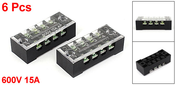 TB-1504 600V 15A 4-Position Covered Screw Terminal Barrier Block Strip 6 Pcs