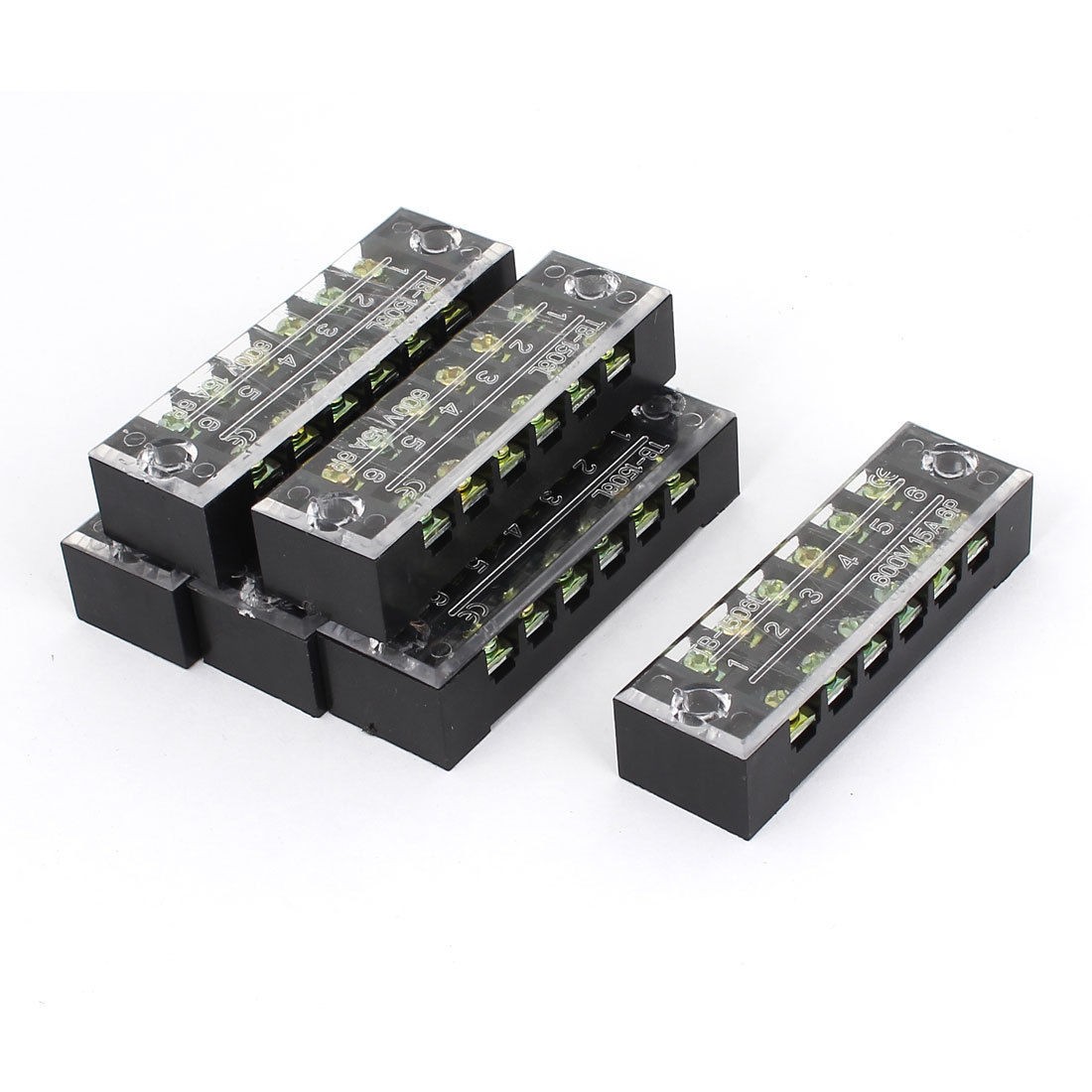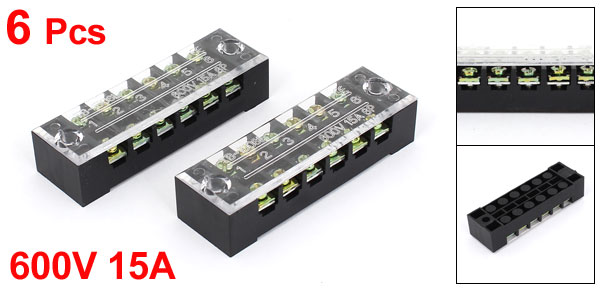 TB-1506 600V 15A 6-Position Covered Screw Terminal Barrier Block Strip 6 Pcs