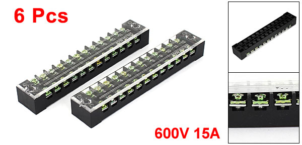 TB-1512 600V 15A 12-Position Covered Screw Terminal Barrier Block Strip 6 Pcs
