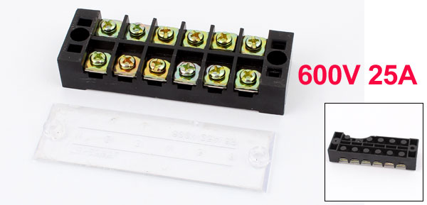 TB-2506 600V 25A 6 Positions Double Rows Covered Barrier Screw Terminal Block