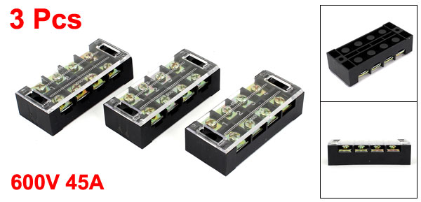 TB-4504 600V 45A 4-Position Covered Screw Terminal Barrier Block Strip 3 Pcs