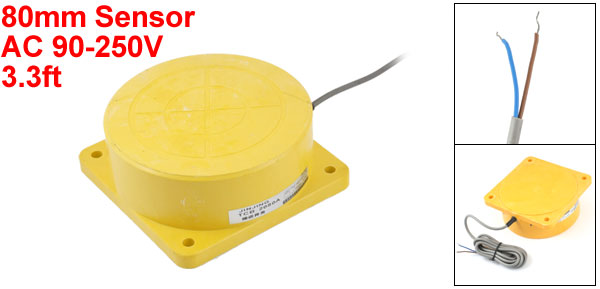 Product Name Proximity Sensor Switch Model TCB-2080A Theory Inductive Sensor Wire Type 2 Wire Type (Brown, Blue) Switch Appearance Type Cylinder Type Output Type NO(Normal Open) Sensor Distance 80mm Sensor Supply Voltage AC 90-250V Output Current(Max) 400 mA Detect Object Iron Column Sensor Diameter 105mm/4.1" Total Size 55 x 140mm/2.2" x 5.5" (L*D) Mounted Hole Dia 9mm/0.35" Mounted Hole Distance 115 x 115mm/4.5" x 4.5"(L*W) Cable Length 1m/3.3ft External Material Ceramic Color Yellow, Gray Net Weight 1310g Package Content 1 x Proximity Sensor Switch - Reviews