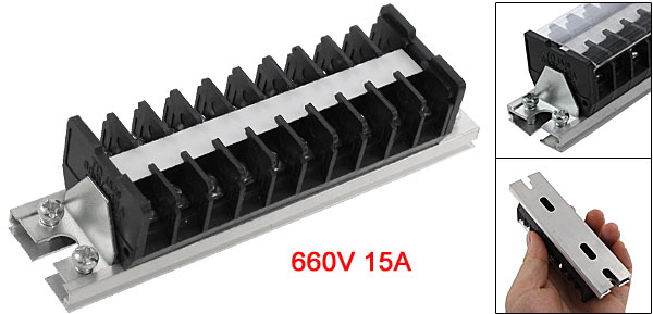 Product Name Terminal Block Model TD-1510 Type 2 Rows, 10 Positions Material Metal, Plastic Color Black, Silver Tone, Clear Rated Voltage 660V 15A Mounted Screw Dia 3mm/ 0.118" Total Size 11.2 x 2.6 x 2.7cm / 4.4'' x 1.02'' x 1.06'' (L*W*H) Weight 65g Package Content 1 x Barrier Terminal Block - Reviews