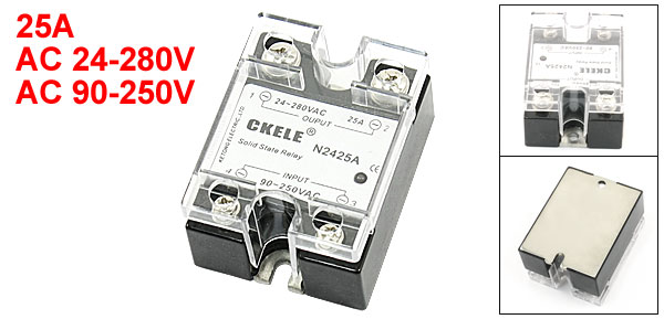 Product Name Solid State Relay Type N2425A Rated Current 25A Input AC 24-280V Output AC 90-250V Relay Size 6 x 4.5 x 2.6cm/ 2.5" x 1.8" x 1"(L*W*T) Material Metal, Plastic, Electric Parts Main Color Silver Tone, Black Weight 124g Package Content 1 x Solid State Relay - Reviews