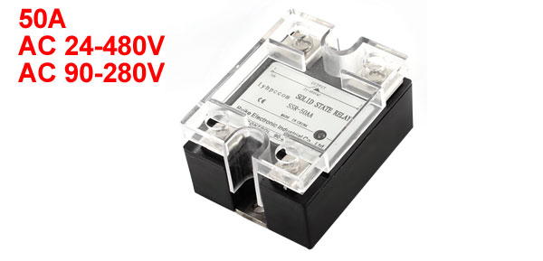Product Name Solid State Relay Type SSR-50AA Rated Current 50A Input AC 24-480V Control AC 90-280V Relay Size 5.8 x 4.5 x 3.3cm/ 2.4" x 1.8" x 1.3"(L*W*T) Material Metal, Plastic, Electric Parts Main Color Clear , Black Weight 97g Package Content 1 x Solid State Relay - Reviews