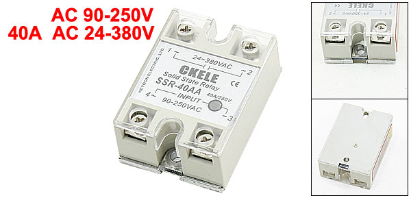 Product Name Solid State Relay Type SSR-40AA Rated Current 40A Input AC 24-380V Output AC 90-250V Relay Size 6 x 4.5 x 2.6cm/ 2.5" x 1.8" x 1"(L*W*T) Material Metal, Plastic, Electric Parts Main Color Silver Tone, Gray Weight 124g Package Content 1 x Solid State Relay - Reviews