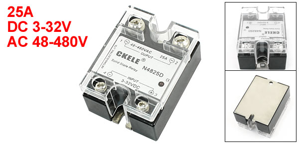 Product Name Solid State Relay Type N4825D Rated Current 25A Input DC 3-32V Output AC 48-480V Relay Size 6 x 4.5 x 2.6cm/ 2.5" x 1.8" x 1"(L*W*T) Material Metal, Plastic, Electric Parts Main Color Silver Tone, Black Weight 124g Package Content 1 x Solid State Relay - Reviews