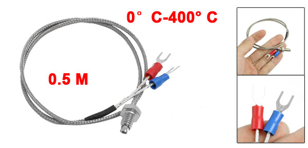 Product Name Thermocouple Probe Type K Type Fork Pin Number 2 Temperature Range 0 C-400 C Screw Dia 6mm/0.23" Pin Pitch 4.3mm/0.17" Fork Pin Size 4.6 x 26mm/ 0.18" x 1"(Dia*L) Pin Spacing 4mm/ 0.2" External Shield Material PTFE Total Length(Approx.) 0.5 Meters / 19.6" Color Clear White Weight 13g Package Content 1 x Earth Thermocouple Probe - Reviews