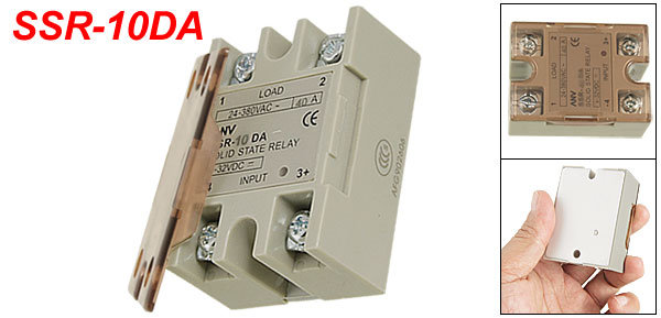 Product Name Solid State Relay Type SSR-10DA Input 4-32V DC Output 10A 24-380V AC Size (Approx.) 5.8 x 4.3 x 2.6cm / 2.28" x 1.7" x 1" (L * W * T) Color As Picture Shown Net Weight 93g Package Content 1 x Solid State Relay - Reviews