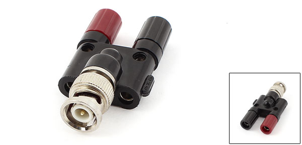 Main Color Black, Red, Silver Tone Net Weight 26g Brand DMiotech Country of Manufacture CHINA Package Content 1 x BNC Male to Dual 4mm Binding Post Material Plastic, Brass(Nickel Plated) Connection Accept 4mm Male Plug/ Stripped Cable Size 53 x 30 x 15mm/ 2.1 x 1.2 x 0.6inch(L*W*H) - Reviews