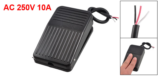 Item Name Foot Pedal Switch Model TFS-01 Action Type Momentary Contact Type 1 NO 1 NC Material Plastic Voltage AC 250V 10A Size 10 x 6 x 3.5cm / 4" x 2.3" x 1.4" (L * W * T) Cable Length 20cm/ 7.8" Color Black Weight 86g Package Content 1 x Foot Switch - Reviews