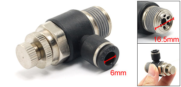 Product Name Pneumatic Speed Controller Inner Diameter (Black End) 6mm / 0.236" Thread Outer Diameter 16.5mm / 0.649" (Approx) Total Size 49 x 37mm / 1.9" x 1.5" (L*W) Material Plastic, Metal Color Black, Silver Tone Weight 64g Package Content 1 x Speed Controller - Reviews