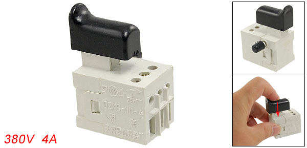 Product Name Electric Tool Switch Model No. DZKS-11-4 Action Type Three Pole Single Throw, NO Lock Type Lock On Technical Parameter 380V , 4A Pillar Terminal Type M3 (3mm diameter) Size 3.6 x 3.6 x 5.1cm/ 1.4" x 1.4" x 2" (L*W*H) Material Plastic Color Off White, Black Weight 31g Package 1 x Electric Tool Switch - Reviews