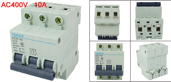 Product Name Miniature Circuit Breaker Model Number DZ47-63 C10 Rated Circuit Breaking Capacity 3000A Rated Current 10A Rated Voltage AC400V Number of Poles 3 Overall Size (Approx.) 7.7 x 6.6 x 5.3cm/3" x 2.6" x 2.1"(L*W*T ) Material Plastic, Electric Components Color As Picture Shown Weight 228g Package Content 1 x Miniature Circuit Breaker - Reviews