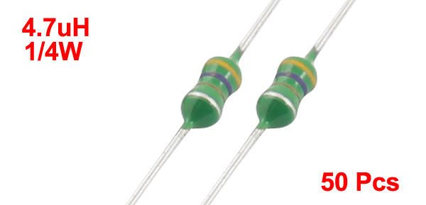 Product Name Color Ring Inductor Inductance Tolerance ±10%(K) Inductance 4.7uH Power 1/4W Material Epoxy Resin, Metal, Inductor Body Size 3mm x 7mm / 0.12" x 0.27"(Max.D*L) Lead Diameter 0.4mm / 0.016" Total Length 6cm / 2.4" Weight 10g Package Content 50(±2%) x Color Ring Inductor - Reviews