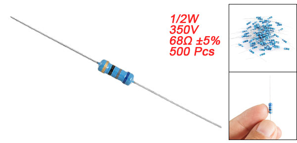 Product Name Carbon Film Resistors Rating Power 1/2W Resistance 68 Ohm Resistance Tolerance ± 5% Withstand Voltage 350V Size(Not Include Leads) 0.6 x 0.25cm / 0.236" x 0.098"(L*D) Leads Dia(Approx) 0.02cm / 0.007" Overall Length(Approx) 5.6cm / 2.2" Color See the Picture Weight 124g Package Content 500(±2%) Pcs of Carbon Film Resistors - Reviews
