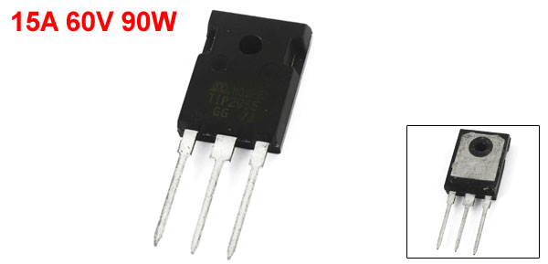 Product Name Silicon PNP Transistor Model No. TIP2955 Mounted Type Through Hole Collector Current 15A Collector-Emitter Voltage 60V Total Disppitation 90W Mounting Hole Diameter 3.5mm / 0.14" Pin Size 20 x 5mm / 0.79" x 0.22" ( L* Pitch) Total Size 40 x 25 x 5mm / 1.6" x 0.98" x 0.20" (L*W*H) Main Material Silicon Weight 5g Package 1 x Silicon Transistor - Reviews
