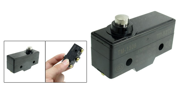 Product Name Limit Switch Model No. TM-1306 Conact Configuration 1NO,1NC(SPDT) Actuator Action Momentary Actuator Type Short Push Plunger Actuator Terminal 3 Screw Terminal Ui 380V Ith 15A AC-15 Ue: 250V, le: 1.5A DC-13 Ue: 220V, le: 0.3A Switch Body Size ~4.8 x 1.7 x 2.3cm / 1.9 x 0.7 x 0.9"(L*W*H) Fixing Holes Dia. ~0.44cm / 0.17" Distance Between Centers of Fixing Holes ~2.5cm / 0.98" Actuator Height 0.8cm / 0.3" Actuator Size 0.4 x 0.7cm / 0.16" x 0.28"(L*D) Color Black Net Weight 32g Package Content 1 x Limit Switch - Reviews