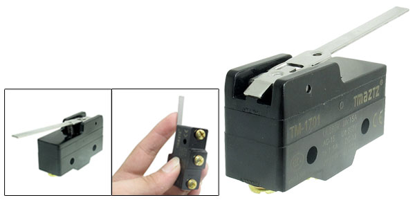 Product Name Micro Switch Model TM-1701 Actuator Type Long Hinger Lever Termination Type Screw Terminal Mounting Type Panel Mount Ui 380V Ith 15A AC-15 Ue: 250V, Ie: 1.5A DC-13 Ue: 220V, Ie: 0.3A Switch Body Size 4.9 x 1.7 x 3cm / 1.9 x 0.7 x 1.2"(L*W*H) Actuator Size 7.3 x 0.5cm / 2.87" x 0.2"(L*Max W) Fixing Holes Diameter 0.44cm / 0.17" Distance Between Centers of Fixing Holes 2.5cm / 0.98" Color Black Net Weight 34g Package Content 1 x Micro Switch - Reviews